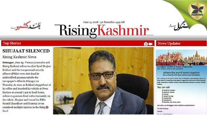 02,ஆனி,தமிழ்தொடர்ஆண்டு-5120: ஜம்மு காஷ்மீரில் இருந்து வெளியாகும் 'ரைசிங் காஷ்மீர்' இதழின் தலைமை ஆசிரியர் சுஜாத் புகாரி கொல்லப்பட்ட சம்பவத்திற்கு இந்திய பாதுகாப்பு படைகளை, ஹிஸ்புல் முஜாகிதீன் மற்றும் லஷ்கர்-இ-தொய்பா இந்தியா, பயங்கரவாத இயக்கங்களாக பட்டியல் இட்டிருக்கும் இயக்கங்கள் விமர்சனம் செய்து உள்ளன. ஜம்மு காஷ்மீரில் இந்திய பாதுகாப்பு படைகளின் மீறல்கள் தொடர்பாக ஐ.நா.வின் மனித உரிமைகள் அறிக்கை வெளியிட்ட நிலையில் பத்திரிக்கையாளர் சுஜாத் புகாரி கொல்லப்பட்டு உள்ளார் என்று அந்த இயக்கங்கள் கூறியுள்ளன. இதற்கிடையே லஷ்கர்-இ-தொய்பா இயக்கம் சுஜாத் புகாரி கொல்லப்பட்டதில் இந்திய முகமைகளின் சதிதிட்டம் உள்ளது. விடுதலைக்காகப் போராடுபவர்கள் ஒவ்வொருவருக்கும் எதிராகவும் இந்திய படைகள் எதிர்ப்பை கொண்டிருக்கிறது. அவர்களை எல்லாம் இந்தியப்படைகள் இலக்காக்கி தாக்குகிறது என கூறியுள்ளது. இதற்கிடையே சுஜாத் புகாரியை சுட்டுக்கொன்ற மர்மநபர்கள் மூன்று பேரது புகைப்படத்தை ஜம்மு காஷ்மீர் காவல்துறை வெளியிட்டு பொதுமக்கள் தகவல் தெரிவிக்க கேட்டுக்கொண்டு உள்ளது. -தமிழர்க்குத் தொடர்ஆண்டு மட்டுமல்ல தொடர் நாள் கணக்கும் உண்டு. இன்று தமிழ்தொடர்நாள் எண்: 18,69,820