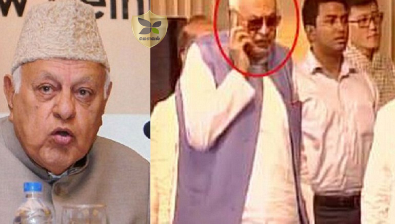 நாட்டுப்பண் இசைக்கப்பட்டபோது தேசிய மாநாட்டு கட்சியின் தலைவர் பரூக் அப்துல்லா செல்பேசியில்