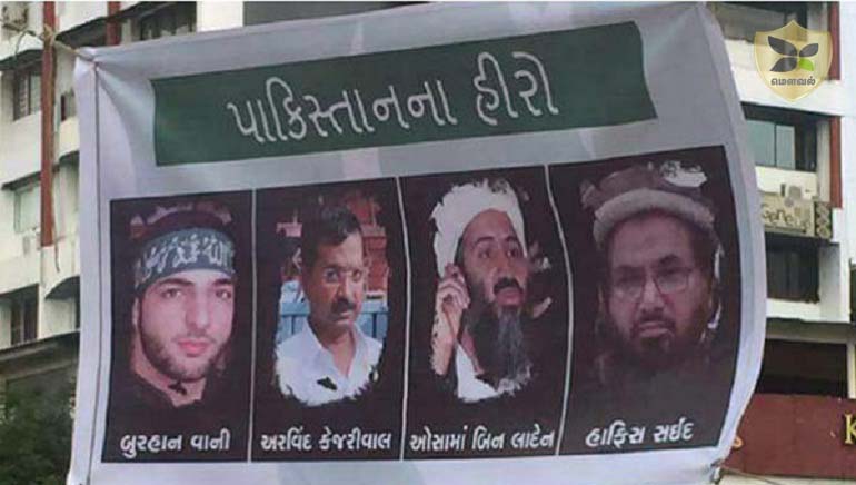டெல்லியில் நடைபெற்று வந்த கெஜ்ரிவால்-பா.ஜ.க மோதல் தற்போது குஜராத் வரை சென்றுள்ளது. குஜராத்துக்கு நான்கு நாள் பயணமாக டெல்லி முதல்வர் அரவிந்த் கெஜ்ரிவால் சென்றுள்ளார். அங்கு யாரோ சில ஆசாமிகள் ஒசாமா பின்லேடன், ஹஃபீஸ் சையது உள்ளிட்ட தீவிரவாதிகளுடன் கெஜ்ரிவால் ஃபோட்டோவையும் இணைத்து, “பாகிஸ்தான் ஹீரோக்கள்” என்று சுவரொட்டியும் ஒட்டிவிட்டார்கள். இந்த சுவரொட்டியைக் கண்ட கெஜ்ரிவால் பா.ஜ.க தான் இந்த வேலையை செய்துள்ளது என்று கொதித்து போயுள்ளார். ஆனால் பா.ஜ.க.வோ இதை மறுத்திருக்கிறது. “சர்ஜிக்கல் ஸ்ட்ரைக் குறித்து தவறாக பேசிய கெஜ்ரிவாலை பா.ஜ.க. தான் விமர்சிக்க வேண்டும் என்றில்லை. நாட்டின் மேல் பற்றுள்ள யார் வேண்டுமானால் அவரை விமர்சிப்பார்கள்” என்று பா.ஜ.க கூறியுள்ளது.