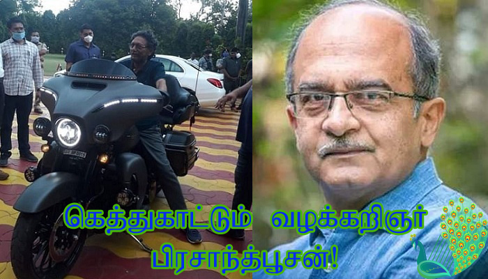 விலை உயர்ந்த ஹார்லி டேவிட்சன் மோட்டார் சைக்கிளில் உச்ச அறங்கூற்றுமன்ற தலைமை அறங்கூற்றுவர் எஸ்.ஏ.பாப்டே அமர்ந்திருக்கும் புகைப்படம் சமூகவலைதளங்களில் வெளியானது. அந்த மோட்டார் சைக்கிள், உள்ளூர் பாஜக பேரறிமுகர் ஒருவருக்குச் சொந்தமானது என்று செய்திகள் வெளிவந்தன. இது குறித்து வழக்கறிஞர் பிரசாந்த் பூசன் வெளியிட்ட கீச்சு அவரைக் குற்றவாளியாக்கியுள்ளது. 05,ஆவணி,தமிழ்த்தொடராண்டு-5122: அறங்கூற்றுமன்ற அவமதிப்பு வழக்கில் குற்றவாளி என்று தீர்ப்பளிக்கப்பட்ட வழக்கறிஞர் பிரசாந்த் பூசண், மன்னிப்புக் கோர மாட்டேன் என்று கெத்து காட்டியுள்ளார். விலை உயர்ந்த ஹார்லி டேவிட்சன் மோட்டார் சைக்கிளில் உச்ச அறங்கூற்றுமன்ற தலைமை அறங்கூற்றுவர் எஸ்.ஏ.பாப்டே அமர்ந்திருக்கும் புகைப்படம் சமூகவலைதளங்களில் வெளியானது. அந்த மோட்டார் சைக்கிள், உள்ளூர் பாஜக பேரறிமுகர் ஒருவருக்குச் சொந்தமானது என்று செய்திகள் வெளிவந்தன. கொரோனா ஊரடங்கு நேரத்தில் நாக்பூரில் உள்ள ஆளுநர் மாளிகையில் உச்ச அறங்கூற்றுமன்ற தலைமை அறங்கூற்றுவர் எஸ்.ஏ.பாப்டே விருந்தினராகத் தங்கியிருந்தபோது, அந்தப்படம் எடுக்கப்பட்டதாகத் தெரியவருகிறது. அந்தப் புகைப்படத்தைத் தனது கீச்சுப் பக்கத்தில் வெளியிட்ட உச்ச அறங்கூற்றுமன்ற மூத்த வழக்கறிஞர் பிரசாந்த பூசண், “தேசத்தின் குடிமக்கள் நியாயத்தீர்ப்பைப் பெறுவதற்கான வாய்ப்பை மறுக்கும் வகையில் உச்ச அறங்கூற்றுமன்றத்தைப் பூட்டிவைத்துவிட்டு, பாஜக தலைவரின் மோட்டார் சைக்கிளில் முகக்கவசமோ, தலைக்கவசமோ அணியாமல் உச்ச அறங்கூற்றுமன்ற தலைமை அறங்கூற்றுவர் பயணம் செய்கிறார்" என்று குறிப்பிட்டிருந்தார். இது தொடர்பாக உச்ச அறங்கூற்றுமன்றம் தாமாக முன்வந்து பிரசாந்த் பூசணுக்கு எதிராக அறங்கூற்றுமன்ற அவமதிப்பு வழக்கைப் பதிவுசெய்தது. அந்த வழக்கு கடந்த முப்பது நாட்களுக்கு முன்பு அறங்கூற்றுமன்றத்தில் விசாரணைக்கு வந்தது. அப்போது, வழக்கு குறித்து பதில் அளிக்குமாறு பிரசாந்த் பூசணுக்கும் கீச்சு நிறுவனத்துக்கும் உச்ச அறங்கூற்றுமன்றம் கவனஅறிக்கை அனுப்பியது. அதன் பிறகு நடைபெற்ற விசாரணையின்போது, பிரசாந்த் பூசண் சார்பில் அணியமான வழக்கறிஞர் துஷ்யந்த் தாவே, பிரசாந்த் பூசண் கூறிய கருத்து, அறங்கூற்றுமன்றத்தின் தரத்தைத் தாழ்த்துவது ஆகாது என்று வாதிட்டார். இந்த வழக்கில், பிரசாந்த் பூஷண் குற்றவாளி என்று உச்ச அறங்கூற்றுமன்றம் கடந்த கிழமை தீர்ப்பு வழங்கியது. அப்போது, தண்டனை விவரம் தெரிவிக்கப்படும் நாளாக நேற்றைய நாளை தெரிவித்திருந்தது. பிரசாந்த் பூசணுக்கு நேற்று தண்டனை குறித்து அறிவிக்கப்படும் என்று சொல்லப்பட்டிருந்த நிலையில், 