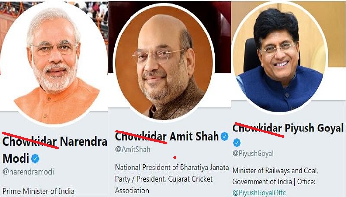 நாட்டின் சௌக்கிதார் என்று தன்னை பிரகடனப்படுத்திக் கொண்ட மோடி, கீச்சுப் பக்கத்தில் தனது பெயருடன் இருந்த சவுக்கிதார் என்ற அடைமொழியை இன்று நீக்கினார். 09,வைகாசி,தமிழ்தொடர்ஆண்டு-5121: தேர்தல் கருத்துப் பரப்புதல் முயற்சியாக மோடி தன்னை நாட்டின் சௌக்கிதார் என்று தன்னை பிரகடனப்படுத்திக் கொண்ட மோடி கீச்சுப் பக்கத்தில் தனது பெயருடன் சவுக்கிதார் என்ற அடைமொழியை இணைத்திருந்தார். அவரை தொடர்ந்து நடுவண் அமைச்சர்கள் பாஜக ஆட்சி செய்யும் பல்வேறு மாநிலங்களின் முதல்வர்கள், பாஜக பஉக்கள், சமஉக்களும் தங்களது பெயர்களுக்கு முன்னால் 'சவுக்கிதார்' என்ற அடைமொழியை இணைத்திருந்தனர். பாராளுமன்ற தேர்தல் முடிவுகள் வெளியாகி வரும் நிலையில் இரண்டாவது முறையாக பாஜக மீண்டும் ஆட்சி அமைப்பது உறுதியாகி விட்டது. இந்நிலையில், கீச்சுப் பக்கத்தில் தனது பெயருடன் இருந்த சவுக்கிதார் என்ற அடைமொழியை இன்று நீக்கினார். இதுதொடர்பாக, அவர் இன்று மாலை தனது கீச்சுப் பக்கத்தில் வெளியிட்டுள்ள இரு பதிவுகளில் 'சாதியவாதம், மதவாதம், ஊழல் மற்றும் குடும்ப ஆட்சி போன்ற தீமைகளுக்கு எதிராக இந்த நாட்டை பாதுகாக்கும் சக்திவாய்ந்த அடையாளமாக சவுக்கிதார் என்னும் சொல் உருவாகி விட்டது. தற்போது சவுக்கிதார் என்னும் சொல்லின் உத்வேகத்தை அடுத்த படிநிலைக்கு கொண்டு செல்லும் நேரம் வந்து விட்டது. இந்த உத்வேகத்தை எல்லா வேளைகளிலும் உயிர்ப்புடன் வைத்திருந்து நாட்டின் முன்னேற்றத்துக்காக உழைக்க வேண்டியுள்ளது. எனது கீச்சுப் பக்கத்தில் இருந்து சவுக்கிதார் என்னும் சொல் விடைபெற்று என்னுள் உறைந்திட்ட ஒரு பகுதியாகிறது. நீங்களும் அவ்வாறே சவுக்கிதாரை உங்களுக்கு உறைய விட்டுக்கொள்ளுமாறு கேட்டுக் கொள்கிறேன்' என குறிப்பிட்டுள்ளார். -தமிழர்க்குத் தொடர்ஆண்டு மட்டுமல்ல தொடர் நாள் கணக்கும் உண்டு. இன்று தமிழ்த் தொடர்நாள் எண்:18,70,161.