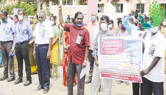 மக்கள் கொரோனாவிற்கு எதிராகப் போராடிக் கொண்டிருக்கும் நிலையில், நடுவண் பாஜக அரசு சந்தடி சாக்கில், மின்வாரியத்தை தனியார் மயமாக்கும் வேலைகளில் ஈடுபட்டு வருவதால் தமிழகம் முழுவதும் பொதுமக்கள் ஆதரவோடு ஆங்காங்கே சமூக இடைவெளியையும் பேணி போராட்டங்கள் முன்னெடுக்கப்பட்டு வருகின்றன. 20,வைகாசி,தமிழ்தொடர்ஆண்டு-5122: பொதுத்துறையான மின்சாரத்துறையைத் தனியாருக்கு தாரை வார்க்க கூடாது. வேளாண்மை, குடிசை, நெசவு போன்ற தொழில்களுக்கு சமூக அக்கறையுடன் செயல்படுத்தி வரும் மாநில அரசின் மானிய திட்டங்களை நடுவண் அரசு முடக்க கூடாது என்பன உள்ளிட்ட கோரிக்கைகளை வலியுறுத்தி, அனைத்து தொழிற்சங்கங்களின் மின்வாரிய அதிகாரிகள், அலுவலர்கள், ஊழியர்கள் மற்றும் ஓய்வு பெற்ற மின்வாரிய அலுவலர்கள், உழவர்கள் மற்றும் மின்நுகர்வோர்கள் தமிழகம் முழுவதும் போராட்டத்தை முன்னெடுத்து வருகின்றனர். இதேபோல் இந்தக் கோரிக்கைகளை வலியுறுத்தி ஜெயங்கொண்டம் மின்சார வாரிய அலுவலகம் முன்பு தமிழ்நாடு மின்வாரிய தொழிற் சங்கம், சங்கங்களின் கூட்டமைப்பு சார்பில் நேற்று ஆர்ப்பாட்டம் நடைபெற்றது. ஆர்ப்பாட்டத்திற்கு மாவட்ட தலைவர் கண்ணன் தலைமை தாங்கினார். பொறியாளர் பிரிவு அரியலூர் மாவட்ட இணை செயலாளர் சிலம்பரசன், சங்க உறுப்பினர் ரம்யா ஆகியோர் முன்னிலை வகித்தனர். வட்ட செயற்குழு உறுப்பினர் ஆறுமுகம் உள்பட பலர் கலந்து கொண்டு கோரிக்கைகளை விளக்கி பேசினர். கூட்டத்தில் மாவட்ட செயற்குழு உறுப்பினர் சண்முகசுந்தரம், ஐக்கிய சங்க செயற்குழு உறுப்பினர் செல்வம் உள்பட பலர் கலந்து கொண்டனர். மின்சாரத்தைத் தனியாருக்குத் தாரை வார்க்கும் புதிய சட்டத்தை நடுவண் அரசு கொண்டுவந்தால் மக்கள் பெரிதும் பாதிக்கப்படுவார்கள் என, அமமுக பொதுச் செயலாளர் தினகரன் விமர்சித்துள்ளார். நாடு முழுவதும் மின்பகிர்மானத்தை மொத்தமாக தனியாரிடம் ஒப்படைக்கும் வகையில் நடுவண் அரசு முன்மொழிந்திருக்கும் மின்சாரத் திருத்தச் சட்ட வரைவை சட்டமாக்கக்கூடாது என்று கேட்டுக்கொள்கிறேன். கொரோனா பாதிப்பில் இருந்தே இந்தியா இன்னும் மீண்டு வராத ஊரடங்கு நேரத்தில், இப்படியொரு சட்டத்திருத்த முன்வரைவை மாநிலங்களின் கருத்துக்கேட்புக்கு அனுப்பியது ஏற்புடையதல்ல. மேலும், இச்சட்டத்திருத்தின் மூலம் மின் உற்பத்தி, பகிர்மானம் ஆகியவை முழுமையாக தனியாரிடம் ஒப்படைக்கப்பட்டால், உழவர்களுக்கு வழங்கப்பட்டு வரும் விலையில்லா மின்சாரம், வீடுகளுக்குக் கட்டணமில்லாமல் அளிக்கப்படும் முதல் 100 அலகு மின்சாரம் ஆகியவற்றுக்கு ஆபத்து ஏற்படும். அதுமட்டுமின்றி, பெட்ரோல், டீசல் விலை உயர்வைப் போல எந்தக் கட்டுப்பாடும் அரசிடம் இல்லாமல்