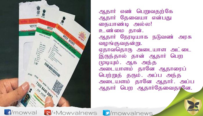 17,கார்த்திகை,தமிழ்தொடர்ஆண்டு-5119: பாஜகதான் இந்தியாவின் நிரந்தர ஆளும் கட்சி என்ற நம்பிக்கையில் மோடி காய் நகர்த்தி வருகிறார். அதன் பொருட்டு ஒட்டு மொத்த இந்திய மக்களையும் மாநில அரசுகளைத் தாண்டி தன் கட்டுப்பாட்டில் வைத்துக் கொள்ளும் முகமாகவே ஆதாரை கடுமையாக நிர்பந்தித்துக் கொண்டிருக்கிறார். மாநிலத்தின் வரி வாங்கும் உரமையை ஒரே வரி சரக்கு,சேவை வரி என்ற தலைப்பில் பிடுங்கிக் கொண்டார். தட்டிக் கேட்க காங்கிரசுக்கு தகுதி இல்லவேயில்லை. சில மாநிலக் கட்சிகள் துள்ளிக் குதித்துக் கொண்டிருந்தாலும் நடுவண் அரசில் மாநிலக் கட்சிகளின் கூட்டாட்சியை உருவாக்குவதே தீர்வு என்ற அறிவோ அனுபவமோ இல்லை. நடுவண் அரசில் இருப்பவர்கள் எந்தத் தவறு செய்தாலும் தண்டிப்பதற்கு அதிகார அமைப்பு இந்தியாவில் எதுவும் இல்லை. அதனால் துணிச்சல் நிறைந்த மோடிக்கு ஊடகங்களும், அனைத்து நிருவாக அமைப்புகளும் கட்டுப் பட்டேயிருக்கின்றன. இதனாலேயே மோடி அரசு வங்கி கணக்குகள், தொலைபேசி எண் பான் எண், குடும்ப அடையாள அட்டை, இப்படி எல்லாவற்றோடும் ஆதார் எண் இணைப்பது அவசியம் என தொடர்ந்து வலியுறுத்தி வருகிறது. இதை எதிர்த்து உச்ச அறங்கூற்று மன்றத்தில் வழக்குகள் தொடரப்பட்டுள்ளன. அறங்கூற்று மன்றம் சட்டம் போடும் அமைப்பல்லவே! நடுவண் அரசு போடுகிற சட்டத்;தைப் பாதுகாக்கிற அமைப்புதானே. நடுவண் அரசைத்தான் நாம் மோடி கையில் பிணைத்திருக்கிறோமே. ஆக ஆதார் எண்ணை எல்லாவற்றிலும் இருந்து தவிர்க்க ஆட்சி மாற்றத்தை தவிர வேறு வழியே கிடையாது. தற்போதைய நிலையில், வங்கி கணக்கு, செல்பேசிஎண் உள்ளிட்டவற்றுடன் ஆதார் எண் இணைக்க கடைசி நாள் நெருங்கி வருகிறது. அதன் விவரம் வருமாறு: பான் அட்டையுடன் ஆதார் எண் இணைக்காவிட்டால், வருமான வரி பதிகை செய்ய இயலாமல் போகும். வங்கிக்கணக்குகளுடன் ஆதார் எண்ணை இணைக்க விட்டால் வங்கிகணக்குகள் செயல்படாமல் முடக்கி வைக்கப்படும். பங்குச்சந்தை மற்றும் மியூச்சுவல் பண்ட் கணக்குகளுடன் ஆதார் எண் இணைக்க விட்டால் அந்த கணக்குகள் முடக்கி வைக்கப்படும். காப்பீட்டு பாலிசிகளுடன் ஆதார் எண்ணை இணைக்க விட்;டால் பாலிசி முடங்கி விடும். அஞ்சல் நிலைய திட்டங்கள், ஓய்வூதியம், வருங்கால வைப்பு நிதி, பத்திரங்கள் அனைத்திற்கும் ஆதார் எண் இணைக்க விட்டால் அவை அனைத்து கணக்குள் செயல்படாமல் நிறுத்தி வைக்கப்படும். இவை அனைத்திற்கும் இணைப்பிற்கு கடைசி நாள் 16,மார்கழி,தமிழ்தொடர்ஆண்டு-5119 (31.12.2017) செல்பேசி எண்களுடன் ஆதார் எண் இணைப்பதற்கு 24,தை,தமிழ்தொடர்ஆண்டு-5119 (06.02.2018) கடைசி நாள். அதன் பின் தொலைபேசி எண் செயல்படாது. சமையல் எரிவாயு, குடும்ப அட்டை உள்ளிட்ட மானியங்கள் பெற ஆதார் எண் இணைப்பதற்கு இறு