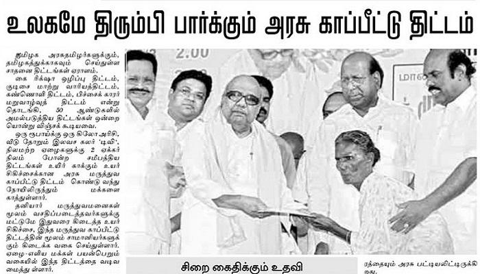17,தை,தமிழ்தொடர்ஆண்டு-5119: இந்தியாவில் உள்ள பிற மாநிலங்களை ஒப்பிடுகையில் தமிழ்நாடு எல்லா விசயத்திலும் ஒரு படி மேல் என்றால் நாம் மறுக்க முடியாது. இந்த நிலைக்கு முக்கியமான காரணம் திமுக- அதிமுக கட்சிகள் செயலலிதா அவர்கள் மரணத்திற்கு முன்பு வரை அறிவித்த திட்டங்களும், அவற்றை செயல்படுத்திய முறையும் தான். இன்றைக்கு தமிழ்நாட்டில் பாஜகவின் ஆலோசனைகள். அத்துமீறல்களால் தமிழ்நாட்டை ஒரு நிழல் கப்பியிருக்கிறது. விரைவில் மீண்டு விடும். ஆனாலும் என்றைக்கும் இந்தியாவில் இருக்கும் பிற மாநிலங்களுக்கு முன்மாதிரி தமிழகமே தற்போது நடுவண் அரசே தமிழ்நாட்டில் இருக்கும் மருத்துவக் காப்பீட்டுத் திட்டத்தை நகலெடுத்து இந்தியா முழுவதும் இருக்கும் மக்களுக்கு பயனளிக்கும் வகையில் அமல்படுத்தும் முயற்சியில் இறங்கியுள்ளதாம். தமிழ்நாட்டில் வெற்றிகரமாக செயல்பட்டுக்கொண்டு இருக்கும் அரசின் மருத்துவ காப்பீட்டு திட்டத்தை நடுவண் அரசு நகல் எடுத்து மிகப்பெரிய திட்டமாக அறிவிக்க உள்ளது. NATHEALTH அமைப்பு நடுவண் அரசு இந்திய மக்கள் அனைவருக்கும் மருத்துவக் காப்பீடு கட்டாயம் வழங்க வேண்டும், மேலும் சுகாதாரத் துறையை முக்கியமான துறையாகக் கொண்டு இயங்க வேண்டும் என இந்திய சுகாதாரக் கூட்டமைப்பான NATHEALTH வெளியிட்டுள்ள அறிவிப்பில் தெரிவித்துள்ளது. இதற்காகத் தனிப்பட்ட முறையில் நிதியை ஒதுக்க வேண்டும் என்றும் இந்த அமைப்பு கூறியுள்ளது. இந்தக் கோரிக்கையை நடுவண் அரசு மிக முதன்மையானதாக எடுத்துக்கொண்டுள்ளது என்பதே மக்களுக்குப் பலன் அளிக்கும் திட்டத்தில் முதல் கட்டமாக அமைந்துள்ளது. தமிழகம் தவிர, இந்தியாவில், இந்திய மக்கள் தொகையில் வெறும் 4 விழுக்காடு மக்களுக்கு மட்டுமே தற்போது சுகாதாரக் காப்பீடு உள்ளது. மீதமுள்ள 86 சதவீத மக்கள் மருத்துவச் செலவுகள் மற்றும் இதர சுகாதாரச் சேவைகளுக்குக் கடன் உடன் பட்டே பணத்தைச் செலவு செய்கின்றனர். இதனை நடுவண் அரசுக்கு, தமிழகத்தை முன் மாதிரியாக சுட்டிக்காட்டி உடனடியாகக் கருத்தில் கொண்டு தக்க நடவடிக்கை எடுக்க வேண்டும் எனNATHEALTH அமைப்பு தெரிவித்துள்ளது. இதனை உடனடியாக அரசு கையில் எடுக்கும் பட்சத்தில் மக்களுக்கு நன்மை செய்ய மோடி அரசுக்கு நல்ல வாய்ப்பாக அமைய முடியும். வரவு-செலவு அறிக்கையைத் தயாரிப்பதற்கு முன்பு, அனைவருக்கும் மருத்துவ காப்பீடு வழங்க வேண்டும் என்ற முக்கியமான பரிந்துரையை நடுவண் அரசிடம் வைக்கப்பட்டு உள்ளது. மோடி தலைமையிலான அரசு எதிர் வரவிருக்கும் பொதுத்தேர்தலின் வெற்றியை மையமாக வைத்து, நடப்பு வரவு-செலவு அறிக்கையைத் தயாரித்து வருகிறது. இந்நிலையில், மருத்துவ காப்பீட்டை மையமாக வைத்து மிகப்பெரிய திட்ட