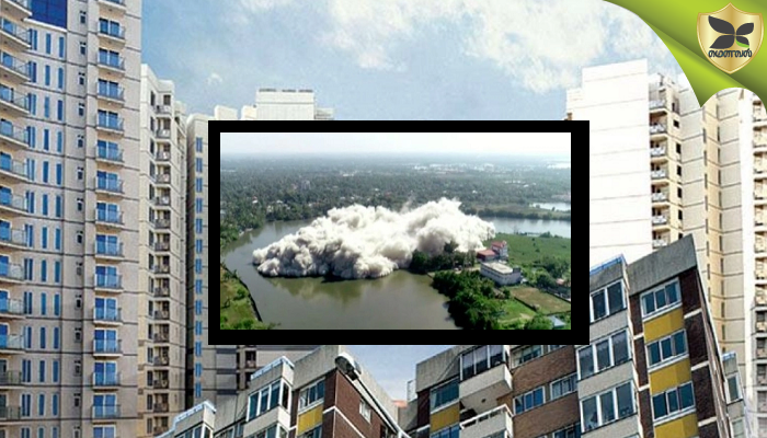 கேரள மாநிலம் எர்ணாகுளம் மாவட்டத்தில் உள்ள மரட் நகராட்சியில் நீர்நிலைகளை ஆக்கிரமித்து கட்டப்பட்ட ஹோலி பெயித், இரட்டை அடுக்குமாடிக் குடியிருப்பான ஆல்பா செரின் டவர்ஸ், ஜெயின் கோரல் கோவ், கோல்டன் காயலோரம் உள்ளிட்ட ஐந்து அடுக்குமாடிக் குடியிருப்புகளையும் இடித்து அகற்ற வேண்டும் என்று உச்சஅறங்கூற்றுமன்றம் பிறப்பித்த உத்தரவு அடுத்து, நேற்றுமுதல் இந்த கட்டடங்கள் வெடிவைத்து தகர்க்கும் பணி தொடங்கியது. 28,மார்கழி,தமிழ்தொடர்ஆண்டு-5121: கேரள மாநிலம் எர்ணாகுளம் மாவட்டத்தில் உள்ள மரட் நகராட்சியில் நீர்நிலைகளை ஆக்கிரமித்து கட்டப்பட்ட ஹோலி பெயித், இரட்டை அடுக்குமாடிக் குடியிருப்பான ஆல்பா செரின் டவர்ஸ், ஜெயின் கோரல் கோவ், கோல்டன் காயலோரம் உள்ளிட்ட ஐந்து அடுக்குமாடிக் குடியிருப்புகளையும் இடித்து அகற்ற வேண்டும் என்று உச்சஅறங்கூற்றுமன்றம் உத்தரவு பிறப்பித்திருந்தது. இதைத் தொடர்ந்து நேற்றுமுதல் இந்த கட்டடங்கள் வெடிவைத்து தகர்க்கும் பணி தொடங்கியது. நேற்று முதற்கட்டமாக ஹோலி பெயித், இரட்டை அடுக்குமாடிக் குடியிருப்பான ஆல்பாசெரின் டவர்ஸ் ஆகியவை வெடிவைத்து தகர்க்கப்பட்டன. இன்று காலை 11 மணிக்கு மூன்றாவது கட்டடமான 16 அடுக்குமாடிகள் கொண்ட ஜெயின் கோரல்கேவ் வெடிவைத்து தகர்க்கப்பட்டது. இதையடுத்து மதியம் 2 மணியளவில் கோல்டன் காயலோரம் கட்டடமும் வெடிவைத்து தகர்க்கப்பட்டது. இந்தக் கட்டடத்தையொட்டியுள்ள 45 வீடுகளில் உள்ள 200-க்கும் அதிகமான மக்கள் வேறு இடத்துக்கு மாற்றப்பட்டனர். கோல்டன் காயலோரம் கட்டடம் அருகே ஒரு பால்வாடி உள்ளது. பால்வாடிக்கும் அந்தப் பகுதியில் புதிதாக கட்டப்பட்டுவரும் மனைக்கும் எந்தப் பாதிப்பும் ஏற்படாமல் கட்டடம் தகர்க்க முன்னெச்சரிக்கை நடவடிக்கை எடுக்கப்பட்டது. கட்டட இடிபாடுகள் நீர்நிலையில் விழாமல் இருப்பதற்காகவும் நடவடிக்கை எடுக்கப்பட்டுள்ளது. இன்றுடன் வெடிவைத்து தகர்க்கும் பணி நிறைவடைகிறது. உச்சஅறங்கூற்றுமன்றத் தீர்ப்பு நிறைவேற்றப்பட்டுள்ளது என நாளையே உச்சஅறங்கூற்றுமன்றத்தில் அறிக்கை சமர்ப்பிக்க கேரள அரசு முடிவு செய்துள்ளது. இந்தக் கட்டடஇடிப்புகள் மூலம் சுமார் 7,200 டன் கட்டடக் கழிவுகள் ஏற்படும் என்றும், இவற்றை அங்கிருந்து அப்புறப்படுத்த 70 நாள்கள் ஆகும் எனவும் கூறப்பட்டுள்ளது. -தமிழர்க்குத் தொடர்ஆண்டு மட்டுமல்ல, தொடர் நாள் கணக்கும் உண்டு. இன்று தமிழ்த் தொடர்நாள் எண்:18,70,395.
