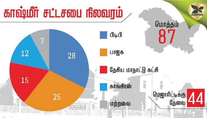 05,ஆனி,தமிழ்தொடர்ஆண்டு-5120: நாடாளுமன்றத் தேர்தலோடு மாநிலத் தேர்தலையும் நடத்திட பாஜக காய் நகர்த்தி வருகிறது. காஷ்மீரில் மக்கள் ஜனநாயக கட்சிக்கு அளித்த ஆதரவை பாஜக வாபஸ் வாங்கியுள்ளது. இதனால் அங்கு மெஹபூபா தலைமையிலான அரசு கவிழ்ந்தது. 3 ஆண்டுகால கூட்டணி ஆட்சி இதன் மூலம் முடிவுக்கு வந்துள்ளது. இதுவும் நாடாளுமன்றத் தேர்தலோடு மாநிலத் தேர்தலையும் நடத்தும் அடிப்படைக்கான திட்டமாக இருக்கலாம் என்று கருதப் படுகிறது. தமிழகத்தில் செயலலிதா மறைவுக்குப் பிறகு ஒரு சிறுபான்மை அதிமுகவை உருவாக்கி அதன் ஆட்சிக்கு பாஜக முட்டுக் கொடுத்து வந்து கொண்டிருக்கிறது. தமிழகத்திலும் அடுத்து நாடாளுமன்றத் தேர்தலோடு மாநிலத் தேர்தலையும் நடத்திடும் அடிப்படையில் ஆட்சிக் கலைப்பு நடக்கலாம் என்று நம்பப் படுகிறது. நாடாளுமன்றத் தேர்தலில் மோடி அலையிலோ வாக்குப் பதிவு எந்திர வலையிலோ மக்களை வீழ்த்தி ஒட்டு மொத்த இந்தியாவை பாஜக குடையின் கீழ் கொண்டு வர இந்த நாடளுமன்றத் தேர்தலோடு மாநில சட்டமன்றத் தேர்தல் என்ற யுக்தி உதவும் என்று ஒரு கணக்கை முன்னெடுக்கிறது பாஜக. நியமன உறுப்பினர்கள் இருவர் உள்பட 89 உறுப்பினர்களைக் கொண்டுள்ள காஷ்மீர் சட்டமன்றத்துக்கு மூன்று ஆண்டுகளுக்கு முன்பு நடைபெற்ற தேர்தலில் எந்தக் கட்சிக்கும் பெரும்பான்மை கிடைக்கவில்லை. இந்தத் தேர்தலில் பாரதிய ஜனதா கட்சிக்கு 25 இடங்களும், ஜம்மு காஷ்மீர் மக்கள் ஜனநாயக கட்சிக்கு 28 இடங்களும் கிடைத்திருந்தன. காஷ்மீரை அழித்த பிறகு ஆதரவை வாபஸ் வாங்கியுள்ளது பாஜக என டெல்லி முதல்வர் அரவிந்த் கேஜ்ரிவால் விமர்சனம் செய்துள்ளார். இதுகுறித்து கேஜ்ரிவால் வெளியிட்ட கீச்சுவில், அழிவை ஏற்படுத்திய பிறகு காஷ்மீரில் இருந்து பாஜக வெளியேறியுள்ளது என காட்டமாக தெரிவித்துள்ளார். பாகிஸ்தான் ராணுவ அத்துமீறல்கள், தீவிரவாதிகள் தாக்குதல்கள் சமீபகாலமாக அதிகரித்த நிலையில் கேஜ்ரிவால் அதை குறிப்பிட்டு இவ்வாறு கீச்சு செய்திருப்பதாக தெரிகிறது. -தமிழர்க்குத் தொடர்ஆண்டு மட்டுமல்ல தொடர் நாள் கணக்கும் உண்டு. இன்று தமிழ்தொடர்நாள் எண்: 18,69,823.