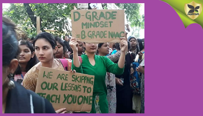 தெலங்கானா மாநிலத்தில், ஆடைக்கட்டுப்பாட்டிற்கு எதிராக, மகளிர் கல்லூரி நிர்வாகத்தை கண்டித்து ஆர்ப்பாட்டத்தில் ஈடுபட்டு பரபரப்பை ஏற்படுத்தியுள்ளனர் மாணவிகள். போராட்டத்தையடுத்து ஆடைக்கட்டுப்பாட்டு விதியை கல்லூரி நிர்வாகம் தளர்த்தியதாக அறிவித்துள்ளது. பெற்றோர்களை கலந்து பேசி முடிவெடுத்திருக்கலாம்; விதிப்பு, தளர்த்தல் இரண்டுக்கும். 31,ஆவணி,தமிழ்தொடர்ஆண்டு-5121: மகளிர் கல்லூரி நிர்வாகத்தை கண்டித்து ஆர்ப்பாட்டத்தில் ஈடுபட்டு பரபரப்பை ஏற்படுத்தியுள்ள மாணவிகள். முழங்கால் தெரியும் வகையிலான ஆடைகள் அணிந்து கொண்டு கல்லூரிக்குள் வரக்கூடாது என ஆடைக்கட்டுப்பாடு விதித்தித்தாம் அந்தக் கல்லூரி. தெலங்கானா மாநில தலைநகரான ஹைதராபாத் நகரின் பெகும்பெட் பகுதியில் உள்ளது செயிண்ட் பிரான்சிஸ் மகளிர் கல்லூரி. மிகவும் பிரபலமும், பழமையும் பெற்ற இக்கல்லூரியில் கடந்த சில நாட்களுக்கு முன்னர் மாணவிகளுக்கு ஆடைக்கட்டுப்பாடு விதிக்கப்பட்டிருந்தது. அதன்படி மாணவிகளுக்கு வழங்கப்பட்ட அறிவிப்பாணையின்படி, முழங்கால் தெரியும் வகையில் குர்தி, லெக்கிண்ஸ் உள்ளிட்ட ஆடைகள் அணிந்து கொண்டு வந்தால் கல்லூரிக்குள் அனுமதிக்கப்பட மாட்டார்கள் என எச்சரிக்கை விடப்பட்டிருந்தது. மேலும் இதற்காகவே கல்லூரி வாயிலில் தனியார் பாதுகாப்பு அமைப்பிலிருந்து பெண்கள் சிலரை கல்லூரி நிர்வாகம் பணியமர்த்தியுள்ளது. சில நாட்களுக்கு முன்னதாகவே கல்லூரிக்குள் இது போன்ற ஆடைகளை அணிந்து வந்த மாணவிகளை எச்சரித்து கல்லூரிக்குள் அனுமதித்துள்ளனர். இதனிடையே நேற்று: இன்று முதல் அனுமதி இல்லாத வகை ஆடைகளை அணிந்து வருபவர்கள் முற்றிலும் அனுமதிக்கப்படமாட்டார்கள் என கூறப்பட்ட நிலையில் சுமார் 150 மாணவிகள் கல்லூரி நிர்வாகத்தை கண்டித்து முழக்கம் எழுப்பி, கைகளில் பதாகைகளை ஏந்தியவாறு ஆர்ப்பாட்டத்தில் ஈடுபட்டனர். இது தொடர்பாக மாணவிகள் கூறும் போது, முழங்காலுக்கு மேல் ஆடை அணிந்து வருவதால் ஆண் விரிவுரையாளர்கள் கூச்சமடைவதாக, கல்லூரி நிர்வாகத்தினர் கூறியதாக குறிப்பிட்டனர். போராட்டத்தையடுத்து ஆடைக்கட்டுப்பாட்டு விதியை கல்லூரி நிர்வாகம் தளர்த்தியதாக அறிவித்துள்ளது. -தமிழர்க்குத் தொடர்ஆண்டு மட்டுமல்ல, தொடர் நாள் கணக்கும் உண்டு. இன்று தமிழ்த் தொடர்நாள் எண்:18,70,278.