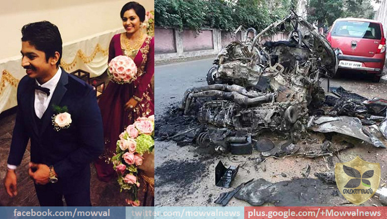 மனைவி நிவேதாவும் சம்பவ இடத்திலேயே உயிரிழந்தனர். காரை உடைத்து எடுத்து உடல்களை மீட்டனர்.