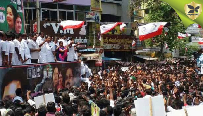 24,பங்குனி,தமிழ்தொடர்ஆண்டு-5119: காவிரி மேலாண்மை வாரியம் அமைக்காத நடுவண், மாநில அரசுகளை கண்டித்து தர்மபுரி மாவட்ட அம்மா மக்கள் முன்னேற்ற கழகம் சார்பில் துணை பொதுச்செயலாளர் தினகரன் தலைமையில் தர்மபுரியில் இன்று கண்டன ஆர்ப்பாட்டம் நடைபெறும் என்று அறிவிக்கப்பட்டிருந்தது. இந்த ஆர்ப்பாட்டத்திற்கு நகர செயலாளர் மணிவண்ணன் அனுமதி கேட்டு தர்மபுரி நகர காவல் நிலையத்தில் கடந்த சில நாட்களுக்கு முன்பு கடிதம் கொடுத்தார். அதற்கு காவல்துறையினர் அனுமதி வழங்கியதாக கட்சியினர் தெரிவித்தனர். அனுமதி வழங்கப்பட்டதாக கூறி கண்டன ஆர்ப்பாட்டத்திற்கு முன்னேற்பாடுகளை கட்சியினர் செய்து வந்தனர். இந்த நிலையில் நேற்று திடீரென்று காவல்துறையினர் இன்று நடைபெறும் ஆர்ப்பாட்டத்திற்கு அனுமதி கிடையாது என்று அ.ம.மு.க. கட்சியினருக்கு கவனஅறிக்கை அனுப்பியதாக கூறப்படுகிறது. கவனஅறிக்கை விவகாரம் குறித்து காவல்துறையில் விசாரித்தபோது, சில அதிகாரிகள் அனுமதி வழங்கப்பட்டு உள்ளது என்றும், வேறு சில அதிகாரிகள் ஆர்ப்பாட்டத்துக்கு அனுமதி மறுக்கப்பட்டுள்ளது என்றும் குழப்பமான பதிலை கூறினர். இதனால் ஆர்ப்பாட்டம் நடைபெறுமா? என்ற எதிர்பார்ப்பு கட்சியினரிடையே ஏற்பட்டதால் பரபரப்பு நிலவியது. இந்த பரபரப்பான சூழ்நிலையில் அசம்பாவிதங்கள் ஏதும் நடை பெறாமல் இருக்க இன்று காலை முதல் 500-க்கும் மேற்பட்ட காவல்துறையினர் தர்மபுரி பி.எஸ்.என்.எல். அலுவலகம், பஸ் நிலையம் ஆகிய பகுதிகளில் குவிக்கப்பட்டிருந்தனர். இந்த நிலையில் இன்று காலை தினகரன் தலைமையில் கண்டன ஆர்ப்பாட்டம் நடைபெற்றது. ஆர்ப்பாட்டத்திற்கு மாவட்டம் முழுவதும் இருந்து ஏராளமான கட்சி நிர்வாகிகள், தொண்டர்கள் திரளாக கலந்து கொண்டனர். அப்போது அவர்கள் காவிரி மேலாண்மை வாரியம் அமைக்காத மத்திய, மாநில அரசுகளை கண்டித்து முழக்கங்கள் எழுப்பினர். -தமிழர்க்குத் தொடர்ஆண்டு மட்டுமல்ல தொடர் நாள் கணக்கும் உண்டு. இன்று தமிழ்தொடர்நாள் எண்: 18,69,750.