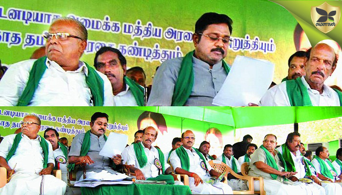 12,பங்குனி,தமிழ்தொடர்ஆண்டு-5119: உரிய காலத்திற்குள் நடுவண் அரசு காவிரி மேலாண்மை வாரியத்தை அமைக்காவிடில் உச்சஅறங்கூற்றுமன்றத்தை அணுகுவோம் என அம்மா மக்கள் முன்னேற்றக் கழகத்தின் துணை பொதுச் செயலாளர் தினகரன் தெரிவித்தார். உச்சஅறங்கூற்றுமன்றத் தீர்ப்பின்படி, நடுவண் அரசு காவிரி மேலாண்மை வாரியத்தை அமைக்க வலியுறுத்தி அம்மா மக்கள் முன்னேற்றக் கழகம் சார்பில், தஞ்சாவூர் திலகர் திடலில் ஞாயிற்றுக்கிழமை உண்ணாநிலைப் போராட்டம் நடைபெற்றது. காலை 8 மணிக்கு உண்ணாநிலைப் பந்தலுக்கு தினகரன் வந்தார். எம்ஜிஆர், ஜெயலலிதா ஆகியோரின் உருவப்படங்களுக்கு மாலை அணிவித்து அஞ்சலி செலுத்திய பின்னர் உண்ணாநிலைப் போராட்டத்தை தொடங்கினார். தமிழக அனைத்து உழவர்கள் சங்கங்களின் ஒருங்கிணைப்புக் குழு தலைவர் பி.ஆர். பாண்டியன் உண்ணாநிலையைத் தொடங்கி வைத்தார். போராட்டத்தின் நிறைவில் தினகரன் பேசியது: ஆறு வாரத்திற்குள் காவிரி மேலாண்மை வாரியத்தை அமைக்க வேண்டும் என்ற உச்சஅறங்கூற்றுமன்றத் தீர்ப்பை செயல்படுத்தாமல் காலம் தாழ்த்திவிட்டு, தமிழக மக்களை ஏமாற்றும் விதமாக வேறு பெயரில் குழு அமைப்பதாகக் கூறி, உழவர்களை நடுவண் அரசு வஞ்சிக்கப் பார்க்கிறது. கர்நாடக மாநிலத் தேர்தலை மனதில் வைத்து, நடுவில் ஆள்பவர்கள் நாடகமாடுகின்றனர். தமிழக அரசு கூறியுள்ளதைப் போல, வரும் வியாழன் வரை பொறுத்திருப்போம். தமிழக முதல்வரும், துணை முதல்வரும் என்ன செய்யப் போகிறார்கள் என நாம் பொறுமையாகப் பார்ப்போம். இல்லையென்றால், காவிரி மேலாண்மை வாரியம் அமைப்பதற்காக உச்சஅறங்கூற்றுமன்றத்தை அணுகி, உரிய தீர்வை பெறுவோம். உச்சஅறங்கூற்றுமன்றம், மேல்முறையீடு செய்ய முடியாது என்று தெரிவித்துள்ளதால், மேல்முறையீடு செய்ய முடியாது என சிலர் கூறலாம். ஆனால், மறுசீராய்வு மற்றும் விளக்கம் கேட்பு மனு போடலாம். காவிரி பிரச்னை மட்டுமல்ல, பெரியாறு அணை, ஸ்டெர்லைட் ஆலை பிரச்னை, கூடங்குளம் அணு உலை பிரச்னை, மீத்தேன், ஹைட்ரோகார்பன், நியூட்ரினோ உள்ளிட்ட தமிழக மக்கள் ஏற்றுக் கொள்ளாத, மக்களின் நலனுக்கு எதிரான அனைத்து பிரச்னைகளுக்காகவும் போராடுவோம். வாக்குவங்கியை பற்றி கவலைப்படாமல், மக்களுக்காகப் போராடும் நம்மை நிச்சயம் மக்கள் ஏற்றுக் கொள்வார்கள். வருங்காலத்தில் புதிய அரசியல் மாற்றத்தை, புதிய அரசை உருவாக்கி, தமிழக மக்களுக்காக உழைத்து, தமிழகத்தை இந்தியாவில் சிறந்த மாநிலமாக உருவாக்குவோம் என்ற ஜெயலலிதாவின் உறுதிமொழியை நிறைவேற்றிக் காட்டுவோம் என்றார் தினகரன். மாலையில் உலகத் தமிழர் பேரமைப்பின் தலைவர் பழ. நெடுமாறன், தினகரனுக்கு பழரசம் கொடுத்து உண்ணாவிரதத்தை முடித்து வைத்தார். இதில் தேசிய தெ