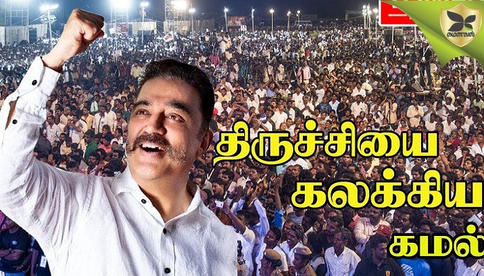 21,பங்குனி,தமிழ்தொடர்ஆண்டு-5119: திருச்சியில் நடைபெறும் மக்கள் நீதி மய்யத்தின் பொதுக்கூட்டத்தில் அக்கட்சியின் தலைவர் கமல்ஹாசன் உரையாற்றி வருகிறார். அப்போது பேசிய அவர், காந்தி நடத்திய ஒத்துழையாமை இயக்கம் முன்னோடியானது என்றார். காவிரி மேலாண்மை வாரியம் இல்லையெனில் தமிழகம் ஒத்துழைக்க மறுக்கும் என்றும் அவர் கூறினார். காவிரியில் நடுவண் அரசு செய்வது மிகப் பெருங்குற்றம் என்றும் அவர் எச்சரித்தார். நடுவண் அரசை அவமரியாதையாய் பேசுவதை நாங்கள் செய்ய மாட்டோம் என்ற கமல் வெள்ளையனே வெளியேறு என்பதுதான் போதுமானது என்றார். டே! வெள்ளைக்கார நாயே வெளியேறு என்று சொல்லும் அவசியம் இல்லை என்றும் கமல் கூறினார். காவிரி மேலாண்மை வாரியம் அமைத்தே ஆக வேண்டும் என்றும் காவிரி பிரச்சனையை திசை திருப்பாதீர்கள், திசை திருப்பினால், திசை திரும்பமாட்டோம் என்றும் அவர் கூறினார். கலவரங்கள் மூலம் திசை திருப்பினாலும் திசை திரும்பமாட்டோம் என்றும் மீண்டும் கோரிக்கை வைத்து உறங்குபவர்களை எழுப்பலாம் என்றும் உறங்குபவர்களை போல நடுவண் அரசு நடிப்பதாக கமல்ஹாசன் கூறினார். ஒத்துழையாமை இயக்கம் நடத்தினால் எங்கே போகும் தெரியுமா? என்று கேட்ட அவர் வீரத்தின் உச்சகட்டமே அகிம்சைதான் என்றார். தொடையை தட்டுவது வீரம் அல்ல, தொடையை தட்டவும் எங்களுக்கு தெரியும் என்றும் கமல் எச்சரித்தார். -தமிழர்க்குத் தொடர்ஆண்டு மட்டுமல்ல தொடர் நாள் கணக்கும் உண்டு. இன்று தமிழ்தொடர்நாள் எண்: 18,69,747.