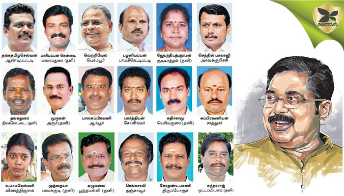 20,ஆனி,தமிழ்தொடர்ஆண்டு-5120: பதினெட்டு சட்டமன்றஉறுப்பினர்கள் தகுதிநீக்க வழக்கை விரைந்து விசாரிக்க வேண்டும் என தினகரன் தரப்பு வழக்கறிஞர் ராஜா செந்தூர்பாண்டியன் நேற்று சென்னை உயர்அறங்கூற்றுமன்றத்தில் தலைமைப் பதிவாளரிடம் மனு அளித்தார். இதையடுத்து, 3-வது அறங்கூற்றுவர் சத்யநாராயணன் முன்பு இந்த வழக்கு நாளை விசாரணைக்கு வருகிறது. முதல்வர் எடப்பாடி பழனிசாமி மீது நம்பிக்கையில்லை எனக் கூறி, தினகரன் ஆதரவு சட்டமன்றஉறுப்பினர்கள் 18 பேர் ஆளுநரிடம் மனு அளித்தனர். இதையடுத்து, ஆளுநரிடம் மனு அளித்த சட்டமன்றஉறுப்பினர்கள் 18 பேர்களை பேரவைத் தலைவர் தகுதிநீக்கம்செய்து உத்தரவிட்டார். இதற்கு எதிர்ப்பு தெரிவித்து, தகுதிநீக்கம் செய்யப்பட்ட சட்டமன்றஉறுப்பினர்கள்; சார்பில், சென்னை உயர்அறங்கூற்றுமன்றத்தில் மனு பதிகை செய்யப்பட்டது. இந்த வழக்கு, இருபது நாட்களுக்கு முன்பு உயர் அறங்கூற்றுமன்ற தலைமை அறங்கூற்றுவர் இந்திரா பானர்ஜி மற்றும் அறங்கூற்றுவர் சுந்தர் அமர்வு முன்பு விசாரணைக்கு வந்தது. அப்போது, அறங்கூற்றுவர்கள் மாறுபட்ட தீர்ப்பு வழங்கினர். இதையடுத்து, இந்த வழக்கில் 3-வது அறங்கூற்றுவர் விசாரிப்பார் என அறிவிக்கப்பட்டு, அறங்கூற்றுவர் விமலா நியமிக்கப்பட்டார். 3-வது அறங்கூற்றுவர் மீது நம்பிக்கையில்லை எனக் கூறி தகுதிநீக்கம் செய்யப்பட்ட சட்டமன்றஉறுப்பினர்கள உச்ச அறங்கூற்றுமன்றத்தை நாடினர். மேலும், பதினெட்டு சட்டமன்றஉறுப்பினர்கள் தகுதிநீக்க வழக்கை விரைந்து விசாரிக்க வேண்டும் என தினகரன் தரப்பு வழக்கறிஞர் ராஜா செந்தூர்பாண்டியன் நேற்று சென்னை உயர்அறங்கூற்றுமன்றத்தில் தலைமைப் பதிவாளரிடம் மனு அளித்தார் இவைகளையடுத்து, 3-வது அறங்கூற்றுவராக அறிவிக்கப்பட்ட அறங்கூற்றுவர் விமாலாவுக்குப் பதிலாக அறங்கூற்றுவர் சத்யநாராயணன் நியமிக்கப்பட்டுள்ளார் 3-வது அறங்கூற்றுவர் சத்யநாராயணன் முன்பு இந்த வழக்கு நாளை விசாரணைக்கு வருகிறது. -தமிழர்க்குத் தொடர்ஆண்டு மட்டுமல்ல தொடர் நாள் கணக்கும் உண்டு. இன்று தமிழ்தொடர்நாள் எண்: 18,69,838.