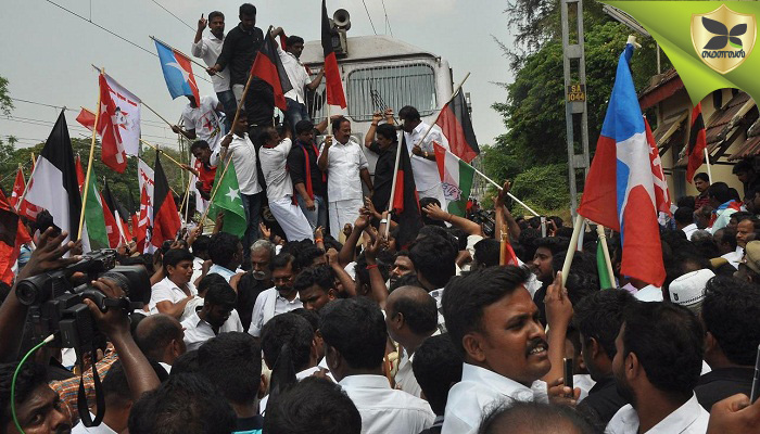 22,பங்குனி,தமிழ்தொடர்ஆண்டு-5119: காவிரி மேலாண்மை வாரியம் அமைக்கக் கோரி தமிழகம் மற்றும் புதுச்சேரியில் எதிர்க்கட்சிகளின் சார்பில் இன்று முழு கடையடைப்புப் போராட்டம் நடத்தப்பட்டு வருகிறது. தி.மு.க தலைமையிலான முழு அடைப்புப் போராட்டத்துக்கு தமிழ்நாடு வணிகர் சங்கங்களின் பேரவைத் தலைவர் த.வெள்ளையன் ஆதரவு தெரிவித்துள்ளார். இதேபோல், தமிழ்நாடு வணிகர் சங்கங்களின் பேரமைப்பு தலைவர் ஏ.எம்.விக்கிரமராஜாவும் ஆதரவு அளித்துள்ளார். மாநிலம் முழுவதும் பெரும்பாலான கடைகள் அடைக்கப்பட்டுள்ளன. கோவை நகரில் 16 இடங்களில், தி.மு.க மற்றும் அதன் தோழமைக் கட்சிகள் பல்வேறு விதமான போராட்டங்களில் ஈடுபட்டனர். அதேபோல, வழக்கறிஞர்கள் தொடர்ந்து 3-வது நாளாக அறங்கூற்றுமன்றப் புறக்கணிப்பில் ஈடுபட்டனர். மேலும், மாணவர் அமைப்பினரும் பல்வேறு போராட்டங்களில் ஈடுபட்டனர். நாம் தமிழர் கட்சி சார்பில், கணியூர் டோல்கோட்டை முற்றுகையிட்டு போராட்டம் நடத்தப்பட்டது. நாம் தமிழர் கட்சியினர் முற்றுகையிட்டு போராட்டம் நடத்திய 1 மணி நேரமும் அந்தப் பகுதியில் போக்குவரத்து நின்றுபோனது. சுங்கச்சாவடியில் எந்த வாகனமும் கட்டணம் செலுத்தவில்லை. இதனிடையே, பாதுகாப்பு கருதி கோவையில் இருந்து கர்நாடகாவுக்கு இன்று பேருந்துகள் இயக்கப்படவில்லை. மற்ற பேருந்துகளும் வழக்கத்தைவிடச் சற்று குறைவாகவே இயக்கப்படுகின்றன. காளபட்டி, நேரு நகர் மற்றும் சரவணம்பட்டியில், பேருந்துகள் மீது கல்வீச்சு நடத்தப்பட்டது. சேலத்தில் சேலம் சந்திப்பு, கொண்டலாம்பட்டி, மகுடஞ்சாவடி, தாரமங்கலம் போன்ற பல்வேறு இடங்களில் சாலை மறியல், தொடர்வண்டி மறியல் போராட்டங்கள் நடைப்பெற்றன. சேலம் மாவட்டம் முழுவதும் 95 விழுக்காடு வர்த்தக நிறுவனங்கள், உணவு விடுதிகள், பேருந்துகள் இயக்கப்படாமல் முழு கடையடைப்பு இருபதால் சேலத்தின் பிரதான சாலைகள் வெறிச்சோடி கிடக்கின்றன. தி.மு.க., தலைமையில் அதன் தோழமை கட்சிகள் சுமார் 2000க்கும் மேற்பட்டவர்கள் சேலம் சந்திப்பில் கூடினார்கள். காவல்துறையினர் தடுப்புகளை கொடுத்துத் தடுத்தார்கள். தடுப்புகளைத் தூக்கி எறிந்து விட்டு காவல்துறையினர் சிலர் தவறி கீழே விழ அவர்களை மிதித்துக் கொண்டே போராட்டக்காரர்கள் ஆவேசமாக ஓடினார்கள். தொடர்வண்டி மேற்கூரை மீது ஏறி முழககங்கள் எழுப்பினார்கள். மோடியின் உருவ பொம்மையை எடுத்துவந்து தீயிட்டுக் கொளுத்தி, செருப்பு மற்றும் துடைப்பத்தால் அடித்து ஆர்ப்பாட்டத்தைத் தொடர்ந்தனர். திருவள்ளூர், ஆவடி, திருநின்றவூர், பூந்தமல்லி உள்ளிட்ட பகுதிகளில் பேருந்து நிலையம் மற்றும் தொடர்வண்டி நிலையங்கள் முற்றுகையிடப்பட்டன. ஆவடி தொடர்வண்டி நிலையம் அருகே சென்னை