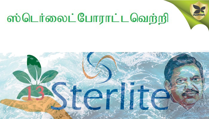 10,வைகாசி,தமிழ்தொடர்ஆண்டு-5119: தூத்துக்குடி ஸ்டெர்லைட் ஆலைக்கான மின் இணைப்பு துண்டிக்கப்பட்டுள்ளது. மாசு கட்டுப்பாட்டு வாரியத்தின் பரிந்துரையின் பேரில் மின்வாரியம் அதிரடி நடவடிக்கை மேற்கொண்டுள்ளது. ஸ்டெர்லைட் ஆலைக்கு எதிரான போராட்டம் கலவரமாக மாறி, தூத்துக்குடியில் உச்சக்கட்ட பதற்றம் நிலவி வரும் நிலையில் இன்று காலை 5.15 மணி முதல் ஸ்டெர்லைட் ஆலையில் மின் இணைப்பு துண்டிக்கப்பட்டுள்ளது. காற்று மற்றும் நீர் மாசுபடுவதை தடுக்கும் சட்டத்தின் கீழ் இந்த நடவடிக்கை மேற்கொள்ளப்பட்டுள்ளதாக கூறப்படுகிறது. ஸ்டெர்லைட் ஆலையின் 2வது அலகின் விரிவாக்க பணிகளுக்கு உயர்அறங்கூற்றுமன்ற மதுரை கிளை நேற்று தடை விதித்த நிலையில், இன்று மாசு கட்டுப்பாட்டு வாரியத்தின் அறிவுறுத்தலின் பேரின் மின் இணைப்பும் துண்டிக்கப்பட்டுள்ளது குறிப்பிடத்தக்கது. இனி ஸ்டெர்லைட் நிறுவனம் தொடர்ந்து நடப்பதற்கு வாய்ப்;;பேயில்லை. அரசியல்வாதிகளுக்கு ஸ்டெர்லைட் நிறுவனம் செலவு செய்த தொகையை, மாசுபாட்டை குறைப்பதற்கான மக்களின் ஆலோசனைகளை செயல்படுத்துவதில் செலவிட்டிருக்கலாம். 1.உயிர்கள்13, 2.ஸ்டெர்லைட், 3.அதிமுக! என்று, மக்கள் போராட்ட வெற்றிக்கு இவ்வளவு பெரிய விலைகள் கொடுத்திருக்க வேண்டாம். -தமிழர்க்குத் தொடர்ஆண்டு மட்டுமல்ல தொடர் நாள் கணக்கும் உண்டு. இன்று தமிழ்தொடர்நாள் எண்: 18,69,797.
