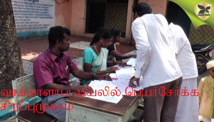 12,மாசி,தமிழ்தொடர்ஆண்டு-5120: வாக்காளர் பட்டியலில் பெயர் சேர்க்க நேற்று நடைபெற்ற சிறப்பு முகாமில் மக்கள் ஆர்வமாக பங்கேற்றனர். தமிழகம் முழுவதும் இன்றும் சிறப்பு முகாம் நடைபெறுகிறது. தமிழகத்தில் தற்போது வாக்காளர்கள்: 5 கோடியே 91 லட்சத்து 23 ஆயிரத்து 197 பேர் உள்ளனர். இதில் ஆண்கள் 2 கோடியே 92 லட்சத்து 56 ஆயிரத்து 960 பேர். பெண்கள் 2 கோடியே 98 ஆயிரத்து 60 ஆயிரத்து 765 பேர். இதர பிரிவினர் 5472 பேர். மேலும் வாக்காளர் பட்டியலில் வெளிநாடுவாழ் வாக்காளர்கள் 97 பேர் சேர்க்கப்பட்டுள்ளனர். தற்போது நாடாளுமன்ற தேர்தல் இரண்டு மாதங்களில் நடைபெற உள்ளது. அதன்படி, தமிழகத்தில் வெளியிட்ட இறுதி வாக்காளர் பட்டியலில் பெயர் விடுபட்டவர்கள் மற்றும் 18 அகவை நிறைவடைந்தவர்களை மீண்டும் வாக்காளர் பட்டியலில் சேர்க்க நடவடிக்கை எடுக்க வேண்டும் என்று இந்திய தேர்தல் ஆணையம் தமிழக தலைமை தேர்தல் அதிகாரிக்கு உத்தரவிட்டிருந்தது. அதன்படி தற்போதுள்ள வாக்காளர் பட்டியலில் விடுபட்டவர்கள் தங்கள் பெயர்களை சேர்க்க வசதியாக தமிழகம் முழுவதும் நேற்றும், இன்றும் சிறப்பு முகாம் நடத்தப்படும் என்று தமிழக தலைமை தேர்தல் அதிகாரி சத்யபிரதா சாகு அறிவித்தார். அதன்படி தமிழகம் முழுவதும் நேற்று சுமார் 67 ஆயிரம் வாக்குச்சாவடிகளில் வாக்காளர் பெயர் சேர்க்க சிறப்பு முகாம் நடைபெற்றது. இந்த முகாமில் பொதுமக்கள் பெயர் சேர்க்க ஆர்வமுடன் விண்ணப்பம் செய்தனர். இந்த சிறப்பு முகாம் இன்றும் (ஞாயிறு) நடைபெறுகிறது. காலை 9.30 மணி முதல் மாலை 5.30 மணி வரை சிறப்பு முகாமில் வாக்காளர் பட்டியலில் பெயர் சேர்க்க, நீக்கம், திருத்தம், முகவரி மாற்றம் உள்ளிட்டவைகளை செய்யலாம் என்று தேர்தல் ஆணையம் அறிவித்துள்ளது. -தமிழர்க்குத் தொடர்ஆண்டு மட்டுமல்ல தொடர் நாள் கணக்கும் உண்டு. இன்று தமிழ்த் தொடர்நாள் எண்: 18,70,073.