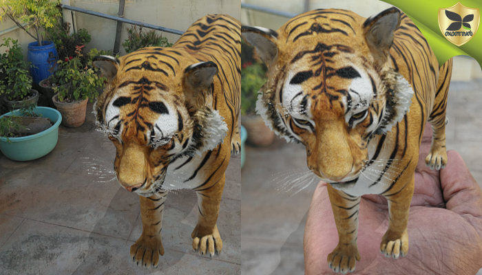 கூகுள், முப்பரிமாண காட்டு விலங்குகளை நமது வீட்டிற்கு அனுப்பியிருக்கிறது. கொரோனா ஊரடங்கில் முடங்கியிருக்கும், குழந்தைகள் மகிழ்ச்சி பேணிட அது கொஞ்சம் கைகொடுக்கும் என்பதாக 21,பங்குனி,தமிழ்தொடர்ஆண்டு-5121: கூகுள், முப்பரிமாண காட்டு விலங்குகளை நமது வீட்டிற்கு அனுப்பியிருக்கிறது. கொரோனா ஊரடங்கில் முடங்கியிருக்கும், குழந்தைகள் மகிழ்ச்சி பேணிட அது கொஞ்சம் கைகொடுக்கும். கொரோனா தாக்கம் உலகளவில் பெரிய பாதிப்பை ஏற்படுத்தி வருகிறது. இந்த மோசமான நிலையைக் கட்டுக்குள் கொண்டுவர பல உலக நாடுகளில் ஊரடங்கு முறை அமல்படுத்தப்பட்டுள்ளது. பெரியவர் முதல் குழந்தைகள் வரை அனைவரும் வீட்டிற்குள் முடங்கிக் கிடக்கும் சூழ்நிலை உருவாகியுள்ளது. குழந்தைகளை வீட்டிற்குள் வைத்துப் பார்த்துக்கொள்வ தென்பது பெற்றோர்களுக்கு இப்போது பெரிய அறைகூவலாக மாறிவிட்டது. இவர்களைக் கருத்தில் கொண்டு கூகிள் நிறுவனம் புதிய அம்சத்தைக் குழந்தைகளுக்காக வெளியிட்டுள்ளது. ஊரடங்கு காலத்தில் வீட்டுக்குள்ளேயே முடங்கி இருக்கும் குழந்தைகளை மகிழ்விக்க புதிய தொழில்நுட்ப அம்சத்தைக் கூகுள் தனது கூகிள் வலைத்தள பக்கத்தில் வெளியிட்டுள்ளது. கூகிள் முப்பரிமாணப் படிமம் என்ற இந்த புதிய தொழில்நுட்பத்தின் மூலம் காட்டு விலங்குகளை நமது வீட்டிற்கே கூகிள் அழைத்து வந்துள்ளது. காட்டு விலங்குகளை நமது வீட்டிற்கே வரவழைக்கும் விளையாட்டின் மூலம் குழந்தைகளை சிறுது நேரம் மகிழ்விக்க முடியும். அதேசமயம், பெற்றோர்களும் சிறிது நேரம் ஓய்வு எடுக்க முடியும் என்று கூகிள் தெரிவித்துள்ளது. உங்கள் மிடுக்குப்பேசியில், முதலில் கூகிள் தேடலில் ஏதேனும் ஒரு விலங்கின் பெயரை தட்டச்சு செய்யுங்கள். உதாரணமாக, புலி எனத் தட்டச்சு செய்து தேடுங்கள். முதல் பக்கத்தில் விக்கிப்பீடியா விளக்கத்துக்குக்கீழ் புலியின் முப்பரிமாண உருவம் இடம் பெற்றிருக்கும். அதன் அருகில் கொடுக்கப்பட்டிருக்கும் View in 3Dதேர்வைத் தொடுங்கள். புலி முப்பரிமாண விலங்காக வந்து விடும். இது முப்பரிமாண விலங்கு என்பதினால் உங்கள் விரல் அசைவுகளுக்கு ஏற்றவாறு அனைத்து வகையாகவும் இந்த படத்தை நீங்கள் திருப்பிப் பார்க்க முடியும். நீங்கள் இருக்கும் அறையிலேயே கட்டு விலங்கை வரவழைக்க View in your space தேர்வைத் தொடுங்கள். உங்கள் செல்பேசியின் படக்கருவி திறக்கப்படும். நீங்கள் இருக்கும் அறையிலேயே இந்த விலங்கின் தோற்றம் தெரியும். இந்த விலங்குளை உங்கள் வீட்டில் குழந்தைகளுக்குக் காட்டி மகிழ்வதோடு அவற்றோடு நீங்கள் குழந்தைகள் எல்லாம் சேர்ந்து படமும் எடுத்துக் கொள்ளலாம். இப்படி புலி, கரடி, ஆடு, ஓநாய், பென்குயின் எனப் பல விலங்குகளை உங்கள் கு