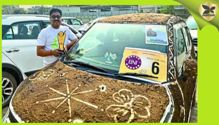சட்டீஸ்கர் மாநிலம் இராய்ப்பூரில் நடந்த விநோதமான போட்டிவொன்றில் மாருதி காருக்கு மாட்டுச்சாணத்தால் ஒரு அங்குலத்திற்கு மூடாக்கு செய்து தனித்துவமான கார் என்கிற பரிசை வென்று வியப்பை ஏற்படுத்தியுள்ளார் ஒரு உள்ளூர்வாசி. 01,மாசி,தமிழ்தொடர்ஆண்டு-5121: சட்டீஸ்கர் மாநிலம் இராய்ப்பூரில் நடந்த விநோதமான போட்டிவொன்றில் மாருதி காருக்கு மாட்டுச்சாணத்தால் ஒரு அங்குலத்திற்கு மூடாக்கு செய்து தனித்துவமான கார் என்கிற பரிசை வென்று வியப்;பை ஏற்படுத்தியுள்ளார் ஒரு உள்ளூர்வாசி. இந்தியாவில் வெயில் கொடுமை அதிகரிக்கும் காலங்களில், தங்களுடைய வாகனங்களுக்குள் வெப்பம் ஏறாமல் இருக்க உரிமையாளர்கள் பலர் நூதன முறைகளை கையாள்வது வழக்கம். ஒருமுறை ஒருவர் தனது காருக்கு ஓலை கூரை வேய்ந்திருந்தார். சாலையில் போவோர் வருவோரையெல்லாம் அது கவர்ந்தது. அந்த வகையில் அண்மைக் காலமாக கார்களுக்கு சாணத்தால் மூடாக்கு செய்யும் வழக்கம் இந்தியர்களிடையே அதிகரித்து வருகிறது. குஜராத்தைச் சேர்ந்த பெண் ஒருவர் தன்னுடைய டொயோட்டா கொரல்லோ காருக்கு சாணத்தால் மூடாக்கு அமைத்து வியப்பை அளித்தார். இப்படிச் செய்வதால், வெயிலில் தாக்கம் அதிகரிக்கும் போதெல்லாம் தனது காருக்குள் குளுமை நிலவுவதாக கூறினார். இதனால் காருக்குள் குளர்சாதன வசதிக் கருவிப் பயன்பாடு வெகுவாக குறைந்துவிட்டது என்றும் தெரிவித்தார். இதை பின்பற்றி பலரும் தங்களுடைய கார்களுக்கு மாட்டுச் சாணத்தில் மூடாக்கு செய்யத் தொடங்கினர். அவரைத் தொடர்ந்து உத்தரப் பிரதேச மாநிலத்தைச் சேர்ந்த மருத்துவர் மஹிந்திரா எக்ஸ்யூவி 500 காருக்கு மாட்டுச்சாண மூடாக்கை வழங்கினார். இது அவருக்கு தேசியளவில் புகழைத் தேடித் தந்தது. இந்நிலையில், சட்டீஸ்கர் மாநிலம் இராய்ப்பூரில் வேறுபாடான போட்டி ஒன்று நடத்தப்பட்டது. அதில் பங்கேற்கும் கார் உரிமையாளர்கள், தங்களுடைய வாகனத்தை மற்றவர்களிடம் இருந்து வேறுப்படுத்தி காட்ட வேண்டும் என்பது தான் போட்டியின் நடைமுறை. அவ்வாறு தனித்துவமாக நிலைநிறுத்தப்படும் கார்களுக்கு முடிவில் பரிசுகள் அறிவிக்கப்படும். இந்த மாறுபட்ட போட்டியில் பங்கேற்க பலரும் ஆர்வம் காட்டினர். தங்களுடைய வாகனங்களைத் தனித்துவமாக அடையாளப்படுத்தி காட்டுவதற்கு பல்வேறு வழிமுறைகளை அவர்கள் கையாண்டனர். சிறிய வகைக் கார்கள், ஆடம்பர வகைக் கார்கள் வைத்திருக்கும் உரிமையாளர்கள் என பலரும் இந்த போட்டியில் ஆர்வமுடன் பங்கேற்றனர். அதன்படி, இப்போட்டியில் கலந்து கொண்ட உள்ளூர்வாசியான ராஜேஷ் என்பவர் தனது மாருதி காரை மாட்டுச் சாணத்தால் ஒரு அங்குலத்திற்கு மூடாக்கு செய்திருந்தார். போட்டியில் பலருடைய கவனத்தை ஈர்த்த அந