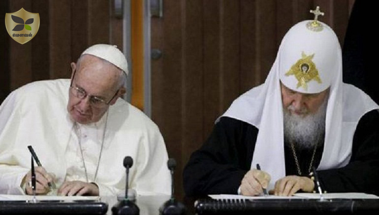 எதிரான பிரகடனம் ஒன்றில் கையெழுத்திட்டனர். சுமார் 1000 ஆண்டுகளுக்குப்பின் போப் ஆண்டவரும்,