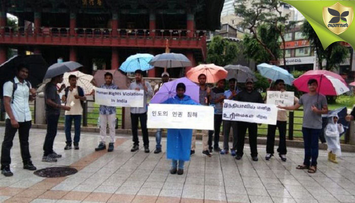 18,ஆனி,தமிழ்தொடர்ஆண்டு-5120: ஸ்டெர்லைட் போராட்டத்தில் இறந்தவர்களுக்கு தீர்வு வேண்டும் என்றும், 8 வழிச்சாலைக்கு எதிர்ப்பு தெரிவித்தும் தென்கொரியாவில் வாழும் தமிழர்கள் கண்டன போராட்டத்தை நடத்தியுள்ளனர். அண்மையில் தூத்துக்குடி ஸ்டெர்லைட் ஆலைக்கு எதிராகப் போராடிய தமிழக மக்கள் 13 பேர் சுட்டுக்கொல்லப்பட்டனர். ஆனால் இன்றுவரை உண்மையில் இறந்தவர்கள் எத்தனை பேர்? துப்பாக்கிச் சூட்டிற்கான காரணம் என்ன? இறந்த மக்களுக்கு என்ன தீர்வு வழங்கப்பட்டது? என எந்த வித அதிகாரப்பூர்வ அறிவிப்பையும் நடுவண் மாநில அரசுகள் தெளிவாக உறுதி செய்யவில்லை என கூறிய தென்கொரிய வாழ் தமிழர்கள், கொரிய மனித உரிமைகள் ஆணையத்திடம் புகாரும் அளித்துள்ளனர். தென்கொரிய தலைநகர் சியோலில் உள்ள போசிங்கக் எனும் இடத்தில் நடைபெற்ற போராட்டத்தில், தூத்துக்குடி துப்பாக்கிச்சூட்டில் இறந்தவர்களுக்குச் சரியான நியாயம் வழங்க வேண்டும் என்றும், இனி இதுபோல் மக்கள் மீது அடக்குமுறையை ஏவக்கூடாது என்றும் கண்டனக் முழக்கம் எழுப்பப்பட்டது. மேலும் தமிழகத்தில் தற்பொழுது திட்டமிட்டுள்ள சேலம்-சென்னை எட்டுவழிச்சாலை இயற்கைக்கும், உழவர்களுக்கும் ஆபத்து விளைவிக்கும் வகையில் இருந்தால் அந்தத் திட்டத்தை அரசு கைவிட வேண்டும் என முழக்கம் எழுப்பினர். இந்தப்போராட்டத்தில் தென்கொரியாவின் சியோல், சுவோன், பியோங்டேக், சின்ச்சாங், ஜோங்காக் போன்ற பகுதிகளில் வாழும் தமிழ் பெண்கள், குழந்தைகள் உட்பட முப்பதுக்கும் மேற்பட்டோர் கலந்துகொண்டனர். தென்கொரியாவில் தற்பொழுது கன மழை பெய்து வரும் நிலையில் கொட்டும் மழையிலும் குடையுடன் தமிழர்கள் போராட்டம் நடத்தினர். தூங்குகிறவனை எழுப்பலாம்; தூங்குவதை போல நடிப்பவனை எழுப்ப முடியுமா என்பது பழமொழி. தமிழக, நடுவண் அரசுகள் அந்த வகையாக நடந்து கொள்ளும் போது, அவர்களை சீர்திருத்த முடியாது; ஆடுத்த ஆண்டு தூக்கி எறிவோம் என்று தமிழக மக்கள் உள்ளூர கருவிக் கொண்டிருக்கிறார்கள். -தமிழர்க்குத் தொடர்ஆண்டு மட்டுமல்ல தொடர் நாள் கணக்கும் உண்டு. இன்று தமிழ்தொடர்நாள் எண்: 18,69,836.