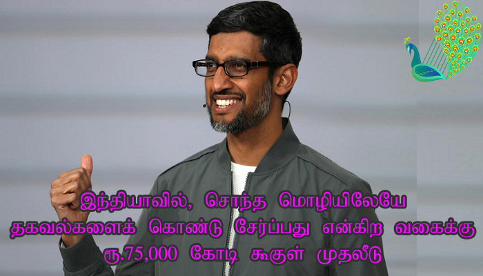 இந்தியாவில், அனைவருக்கும் அவர்களது சொந்த மொழியிலேயே தகவல்களைக் கொண்டு சேர்ப்பது என்பது உள்ளிட்ட நான்கு திட்டங்களுக்கு, கூகுளின் மூலம் ரூ.75,000 கோடி முதலீட்டை இந்தியாவிற்கு ஒதுக்கீடு செய்து தமிழனுக்கான பொதுமை குணத்தை அடையாளங் காட்டியிருக்கிறார் சுந்தர் பிச்சை. 29,ஆனி,தமிழ்த்தொடராண்டு-5122: நாமக்கல் கவிஞர் வெ.இராமலிங்கம் அவர்கள் பாடுவார்கள்:- சிற்பம் சித்திரம் சங்கீதம் அந்த அடையாளத்தைத் தூக்கிப்பிடிக்கிறவராக- கூகுள் நிறுவனத்தின் தலைவர் சுந்தர் பிச்சை அவர்கள்- ஹிந்தியையே தொடர்ந்து கொண்டாடி வரும் ஆட்சியாளர்களையே கண்டுவருகிற இந்தியாவில், அனைவருக்கும் அவர்களது சொந்த மொழியிலேயே தகவல்களைக் கொண்டு சேர்ப்பது என்பது உள்ளிட்ட நான்கு திட்டங்களுக்கு, கூகுளின் மூலம் ரூ.75,000 கோடி முதலீட்டை இந்தியாவிற்கு ஒதுக்கீடு செய்து தமிழனுக்கான பொதுமை குணத்தை அடையாளங் காட்டியிருக்கிறார். ‘கூகுள் நிறுவனத்தின் இந்தியாவிற்கான எண்ணிம மேம்பாட்டு நிதியம்’ என 75,000 கோடி ரூபாயை இந்தியாவுக்காக ஒதுக்கியிருக்கியிருக்கிறது கூகுள். 5-7 ஆண்டுகளில் பல்வேறு வடிவங்களில் இந்தத் தொகையை இந்தியாவில் முதலீடு செய்யும் கூகுள். உலகின் முன்னணி தகவல்தொழில்நுட்ப நிறுவனங்களில் ஒன்றான கூகுள் ஒவ்வொரு ஆண்டும் “இந்தியாவிற்கு கூகுள்” என்ற நிகழ்வ மூலம் இந்தியாவுக்காக வைத்திருக்கும் சிறப்புத் திட்டங்களை அறிமுகப்படுத்துவது வழக்கம். அப்படி ஆறாவது முறையாக இன்று “இந்தியாவிற்கு கூகுள்” விழா நடந்தது. கூகுள் தலைவர் சுந்தர் பிச்சை, மின்னணு மற்றும் தகவல் தொழில்நுட்பத்துறை அமைச்சர் ரவிசங்கர் பிரசாத், மனிதவள மேம்பாட்டுத்துறை அமைச்சர் ரமேஷ் போக்ரியால் கலந்துகொண்ட இந்த நிகழ்வு இம்முறை மொத்தமாக இயங்கலையில் நடந்து முடிந்தது. முதலில் அறிமுக உரையாற்றி விழாவைத் தொடங்கி வைத்தார் கூகுளின் இந்தியத் தலைவர் சஞ்சய் குப்தா. இந்தியாவில் கொரோனா சூழலில் மக்களுக்கு சரியான தகவல்கள் சென்று சேர்வது தொடங்கி பல வழிகளில் கூகுள் எவ்வாறு மக்களுக்கு உதவி வருகிறது என எடுத்துக் கூறினார். கூகுள் பே மூலம் மட்டும் 120 கோடி ரூபாய் ‘தலைமை அமைச்சர் நலம்’ நிதிக்கு அனுப்பப்பட்டிருக்கிறது என்று அவர் கூறினார். அவருக்கு அடுத்து ஆல்பாபெட் மற்றும் கூகுள் தலைவர் சுந்தர் பிச்சை பேசினார். எண்ணிமப் பொருளாதாரத்தில் முன்னணி நாடாக இந்தியாவை மாற்றுவதே கூகுளின் இலக்கு. அந்த வகையில், ‘கூகுள் நிறுவனத்தின் இந்தியாவிற்கான எண்ணிம மேம்பாட்டு நிதியம்’ என 75,000 கோடி ரூபாயை இந்தியாவுக்காக ஒதுக்கியிருக்கிறோம். 5 - 7 ஆண்டுகளில் பல்வேறு வடிவங்களில் இந்தத் தொகையை இந்தியாவில் முதலீடு செய்வோம் என்று த