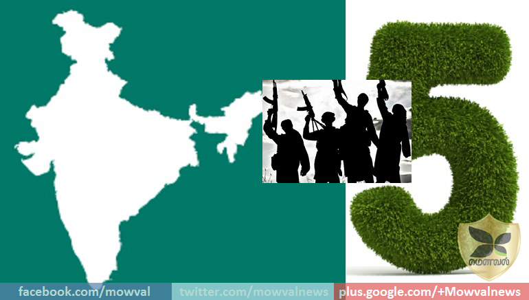 ஆண்டில் உலக அளவில் அதிகம் பயங்கரவாத தாக்குதல் நடந்த முதல் ஐந்து நாடுகளில் இந்தியாவும்
