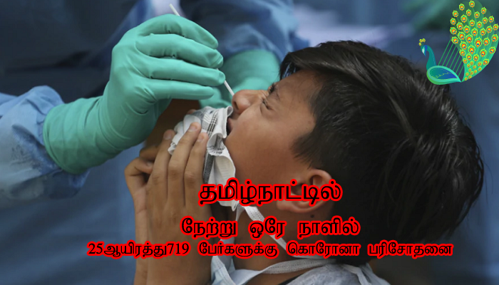 கொரோனா இருப்பவர்களைக் கண்டறியாமலே, வெளியே நடமாடவிட்டுக் கொண்டு, கொரோன ஒழிப்பு சாத்தியமில்லை என்கிறது உலகநலங்கு அமைப்பு. தமிழகத்தில் நேற்று ஒரே நாளில் 25 ஆயிரத்து 719 பேருக்கு கொரோனா பரிசோதனை செய்யப்பட்டுள்ளது. 05,ஆனி,தமிழ்த்தொடராண்டு-5122: கொரோனா இருப்பவர்களைக் கண்டறியாமலே, வெளியே நடமாடவிட்டுக் கொண்டு, கொரோன ஒழிப்பு சாத்தியமில்லை என்கிறது உலகநலங்கு அமைப்பு. அதனடிப்படையில் தமிழ்நாட்டில் கொரோனா சோதனை படிப்படியாக அதிகரிக்கப்பட்டே வருகிறது. தமிழ்நாட்டில் நேற்று ஒரே நாளில் 25 ஆயிரத்து 719 பேருக்கு கொரோனா பரிசோதனை செய்யப்பட்டுள்ளது. தமிழகத்தில் கொரோனா நுண்நச்சு தொடர்பான நேற்றைய விவரங்களை மாநில நலங்குத்துறை வெளியிட்டது. அந்த தகவலின் படி மாநிலத்தில் நேற்று ஒரே நாளில் 2 ஆயிரத்து 1141 பேருக்கு புதிதாக கொரோனா தொற்று உறுதி செய்யப்பட்டுள்ளது. இதற்கிடையில், தமிழகத்தில் கொரோனா உறுதி செய்யப்பட்டவர்களின் எண்ணிக்கை தொடர்ந்து அதிகரிக்க பரிசோதனையின் எண்ணிக்கை முதன்மைக் காரணமாக கருதப்படுகிறது. இந்நிலையில், தமிழகத்தில் இதுவரை இல்லாத அளவுக்கு நேற்று ஒரே நாளில் 25 ஆயிரத்து 719 பேருக்கு கொரோனா பரிசோதனை செய்யப்பட்டுள்ளது. மாநிலம் முழுவதும் நேற்று ஒரே நாளில் மட்டும் 26 ஆயிரத்து 736 சளி மாதிரிகள் பரிசோதனை செய்யப்பட்டுள்ளன. இதன் மூலம் தமிழகத்தில் இதுவரை கொரோனா பரிசோதனை செய்யப்பட்டவர்களின் மொத்த எண்ணிக்கை 7 லட்சத்து 63 ஆயிரத்து 506 ஆக அதிகரித்துள்ளது. மேலும், தமிழ்நாடு முழுவதும் மக்களிடம் இருந்து எடுக்கப்பட்ட பரிசோதனை மாதிரிகளின் மொத்த எண்ணிக்கை 8 லட்சத்து 443 ஆக அதிகரித்துள்ளது. இதனால் தமிழ்நாட்டில் நுண்நச்சுப் பரவியவர்களின் மொத்த எண்ணிக்கை 52 ஆயிரத்து 334 ஆக அதிகரித்துள்ளது. இதில் வெளிநாடுகள் மற்றும் வெளிமாநிலங்களில் இருந்து வந்தவர்களும் உள்ளடக்கம் ஆகும். கொரோனா பாதிப்பு உறுதி செய்யப்பட்டவர்களில் 23 ஆயிரத்து 65 பேர் சிகிச்சை பெற்று வருகின்றனர். நேற்று ஒரு நாளில் கொரோனா தொற்று பாதிக்கப்பட்டோரில் குணமானவர்கள் 1,017 பேர்கள் ஆவர். இவர்களோடு தமிழ்நாட்டில் கொரோனாவில் இருந்து மீண்டவர்களின் மொத்த எண்ணிக்கை 28 ஆயிரத்து 641 ஆக அதிகரித்துள்ளது. ஆனாலும், நுண்நச்சுத் தாக்குதலுக்கு நேற்று மட்டும் 49 பேர் பலியாகியுள்ளனர். இதனால் தமிழ்நாட்டில் கொரோனாவால் உயிரிழந்தவர்களின் எண்ணிக்கை 625 ஆக அதிகரித்துள்ளது.