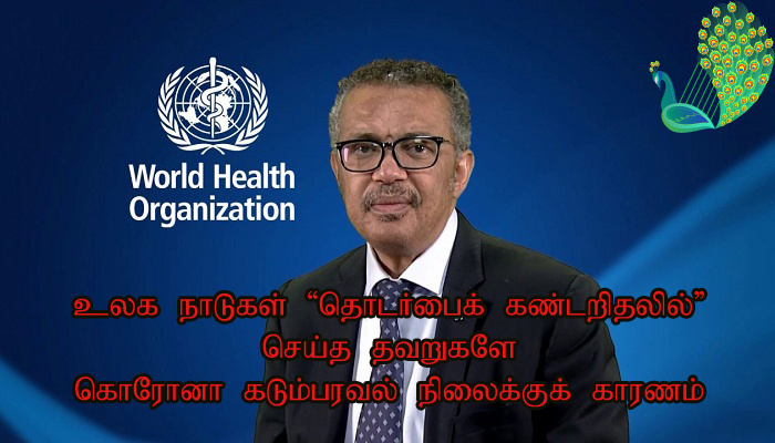 கொரோனா நோய்த் தொற்றுக்கு எதிரான இந்தப் போராட்டத்தில் ‘தொடர்பைக் கண்டறிதல்’, நோய் பாதித்தவர்களைக் கண்டறிந்து தனிமைப்படுத்தி, நோய் பரவலைத் தடுக்க உதவுகிறது. அதற்கு நாம் ‘தொடர்பைக் கண்டறிதல்’ முறையைச் சரியாகப் பயன்படுத்தியாக வேண்டும். என்பதாக உலக நலங்கு நிறுவனத்தின் இயக்குநர் டெட்ராஸ் அதனாம் எச்சரிக்கை விடுத்துள்ளார். 20,ஆனி,தமிழ்த்தொடராண்டு-5122: கொரோனா நோய்த் தொற்றுக்கு எதிரான இந்தப் போராட்டத்தில், ‘தொடர்பைக் கண்டறிதல்’ நோய் பாதித்தவர்களைக் கண்டறிந்து தனிமைப்படுத்தி, நோய் பரவலைத் தடுக்க உதவுகிறது. நோய் பரவாமல் தடுப்பதே இந்த நேரத்தில் மிக முதன்மையான ஒன்று. சீனாவின் வுகான் மாகாணத்தில் தோன்றிய கோவிட்-19 நுண்நச்சு, உலகம் முழுக்கப் பரவி பாதிப்புகளை ஏற்படுத்திவருகிறது. குறிப்பாக அமெரிக்கா, பிரேசில், ரஷ்யா மற்றும் இந்தியாவில் நோய் பாதிப்பு உச்சத்தில் இருக்கிறது. நோய் பரவலைத் தடுக்க, பல நாடுகளில் ஊரடங்கு கட்டுப்பாடுகள் நடைமுறைப்படுத்தப்பட்டுள்ள போதிலும், நோய் பாதித்தவர்களின் எண்ணிக்கை குறைந்தபாடில்லை. இந்நிலையில், உலக நாடுகள் ‘தொடர்பைக் கண்டறிதல்’ (கான்டாக்ட் ட்ரேஸிங்) ல் செய்த தவறுகளே இந்த நிலைக்குக் காரணம் என்றும், வரும் காலங்களில் பாதிக்கப்பட்டுள்ள நாடுகள் சாக்குக் கூறாமல், கூடுதல் முனைப்புடன் அதை நடைமுறைப்படுத்தி, நோய் பாதிப்பைக் குறைக்க வேண்டும் என்றும் உலக நலங்கு நிறுவனத்தின் இயக்குநர் டெட்ராஸ் அதனாம் எச்சரிக்கை விடுத்துள்ளார். இது குறித்து டெட்ரோஸ், “நோய்த் தடுப்பு நடவடிக்கைகளில் உலக நாடுகளுக்கிடையே ஒற்றுமை இல்லை என்பது வருத்தமளிக்கிறது. உலகின் பல இடங்களில் கொரோனா நுண்நச்சு தற்போது மிகவும் தீவிரமாகப் பரவிவருகிறது. ஏராளமான உயிர்ச் சேதங்களையும் பாதிப்புகளையும் ஏற்படுத்திவரும் கொரோனாவின் முழு தீவிரத் தாக்குதலை உலகம் இனிமேல்தான் எதிர்கொள்ளவிருக்கிறது. கொரோனா நோய்த் தொற்றுக்கு எதிரான இந்தப் போராட்டத்தில் ‘தொடர்பைக் கண்டறிதல்’, நோய் பாதித்தவர்களைக் கண்டறிந்து தனிமைப்படுத்தி, நோய் பரவலைத் தடுக்க உதவுகிறது. நோய் பரவாமல் தடுப்பதே இந்த நேரத்தில் மிக முதன்மையான ஒன்று. அதற்கு நாம் ‘தொடர்பைக் கண்டறிதல்’ முறையைச் சரியாகப் பயன்படுத்தியாக வேண்டும். ஆனால், நோய் பாதிப்பு அதிகமுள்ள பெரும்பாலான நாடுகள் அதை முறையாக மேற்கொள்ளாமல், மெத்தனப்போக்கோடு செயல்பட்டு வருவது வருத்தமளிக்கிறது. நாம் அனைவரும் இந்தப் பேரிடர் நிலையிலிருந்து மீண்டு, இயல்பு நிலைக்குத் திரும்ப விரும்புகிறோம். ஆனால், எண்ணத்துக்கேற்ற செயல்பாடுகள் நம்மிடம் ஒருபோதும் காணப்படுவதில்லை. இன்னமும், மக்கள் நோய்த்தொற