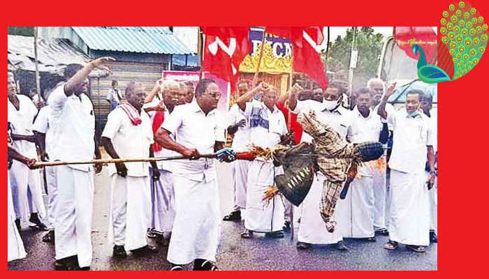 ஒன்றிய பாஜக அரசு முன்னெடுத்திருக்கும், கருப்பு வேளாண் சட்டங்களை திரும்ப பெறக்கோரி தமிழகம் முழுவதும் பரவலாக மார்க்சிஸ்ட் கம்யூனிஸ்டு கட்சியினர் போராட்டம். போராட்டத்தில் மோடி உருவபொம்மையை எரித்தனர்.