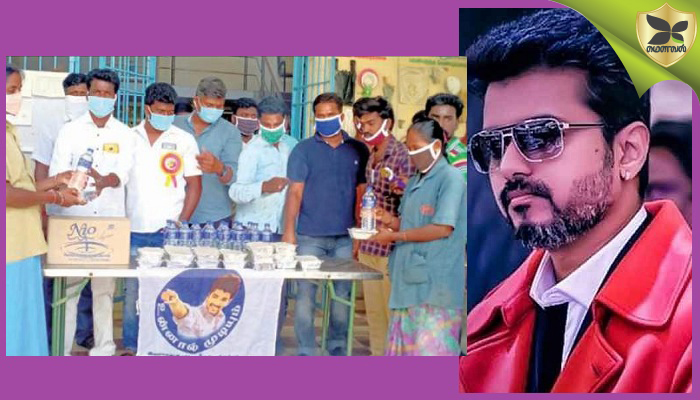 கொரோனா தடுப்பு பணியில் ஈடுபட்டுள்ளவர்களுக்கு விஜய் மக்கள் இயக்கத்தினர் சார்பில் பிரியாணி மற்றும் பாதுகாப்பு பயன்பாட்டுப் பொருட்கள் வழங்கப்பட்டன.